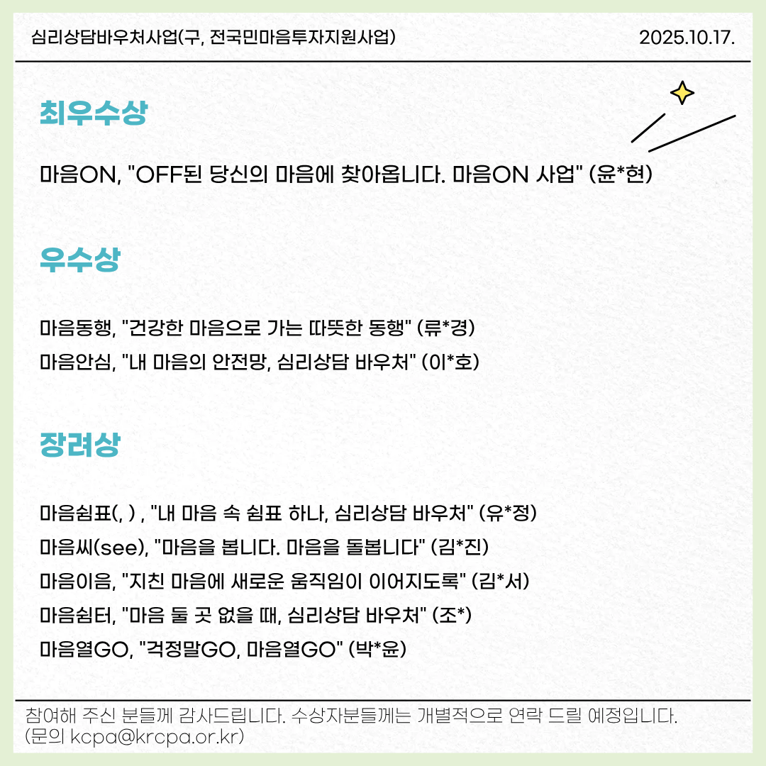 심리상담바우처사업 명칭 및 홍보슬로건 당선작 공지